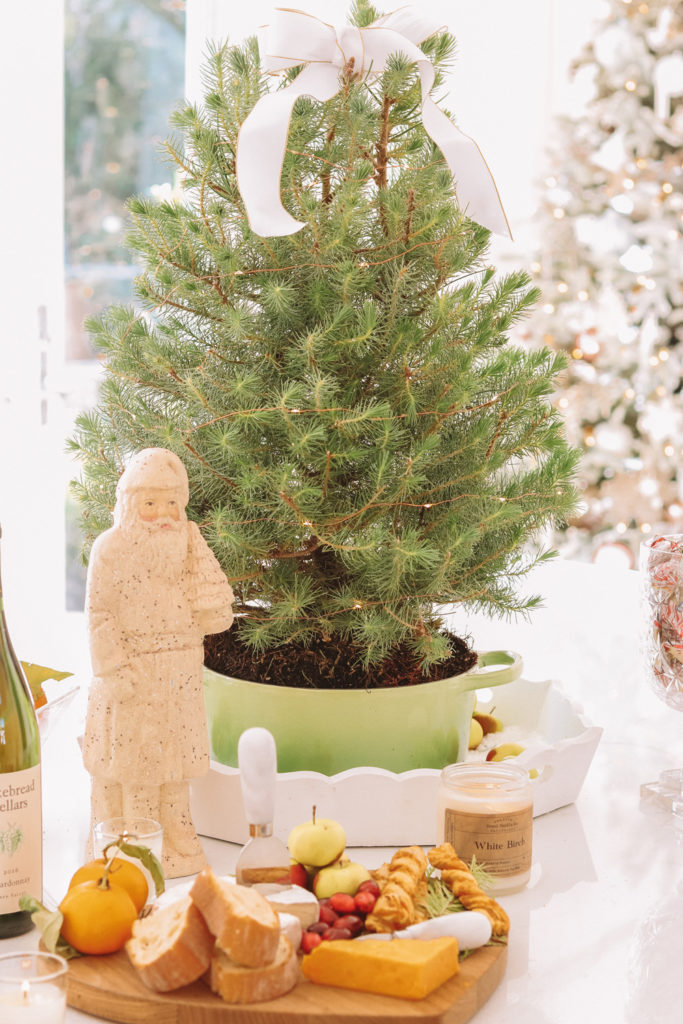 When I host a party, I always make sure to decorate the kitchen in a fun and festive way. Every year I always pick up a small live Christmas tree to plant in a pot in our house… This year I found the cutest, chubbiest cedar and decided to plant it inside our Palm Round Dutch Oven! We placed it on the island, a place where everyone gathers and it was a total hit.. everyone loved it so much that they said they wanted to copy the idea. I always try to think outside the box when decorating! ;)