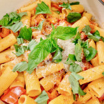 Hi everyone! We wanted to share a yummy and deliciously hearty Fall recipe from Jeff as the season changes.. what do you think? I know how much you all love Jeff’s recipes! On a whim he decided to make a Spicy Garden Harvest Rigatoni for dinner and we all fell in LOVE. I think you will too.